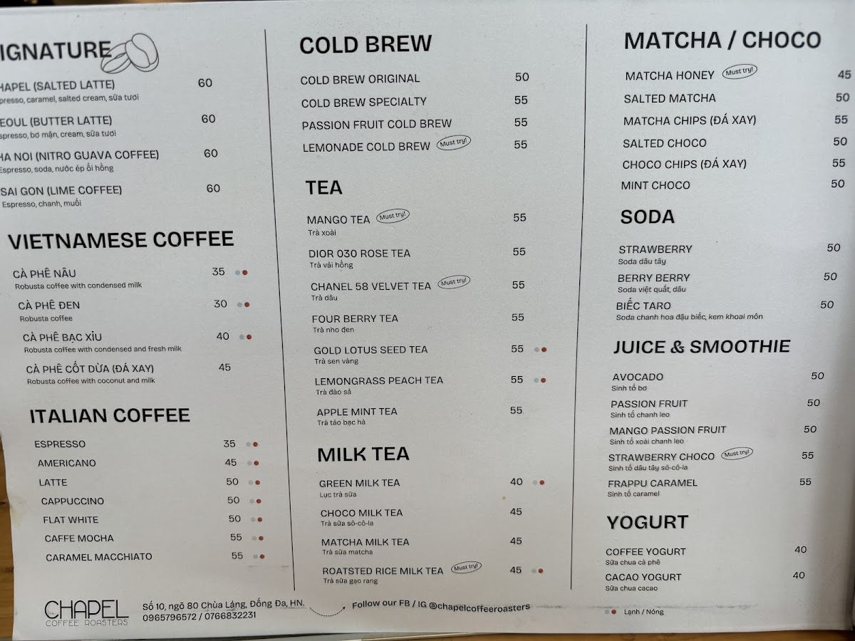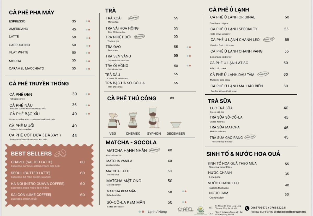At Chapel Coffee Roasters, nestled in the heart of Hanoi at 10 Ng. 80 P. Chùa Láng, you'll discover a sanctuary for coffee lovers. This cozy haven is renowned for its exceptional flat white, as highlighted by patrons who rave about its creamy richness. The ambiance is beautifully curated, offering chill vibes perfect for work or relaxation.